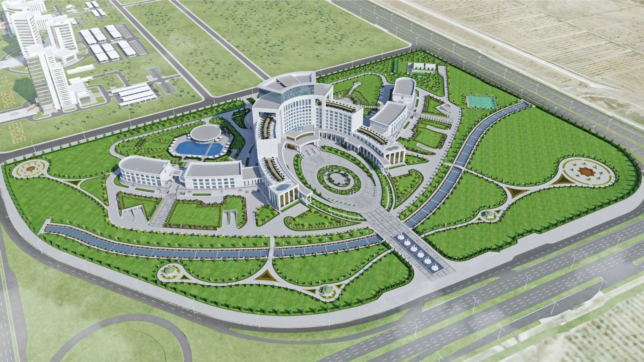 L’hôtel est situé à 10km du centre-ville en périphérie sud de la ville d’Achgabat, sur un nouvel axe conçu et pensé par le président du Turkménistan. Pour ce dernier, cet axe est l’endroit où doivent s’élever les nouveaux projets les plus représentatifs et les plus prestigieux de cette nouvelle ère (ambassades, hôtels de luxe, sièges d’entreprises locales, banque centrale, etc.).